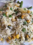My take on Orzo salad – otherwise defined as “dinner when you return home late and are bored of eating left-overs”