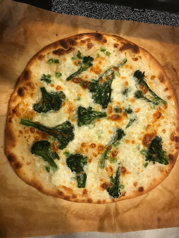 Think of your favorite wood fired pizzeria pizza with its slightly charred crust with large bubbles. This is that kind of pizza but at home.