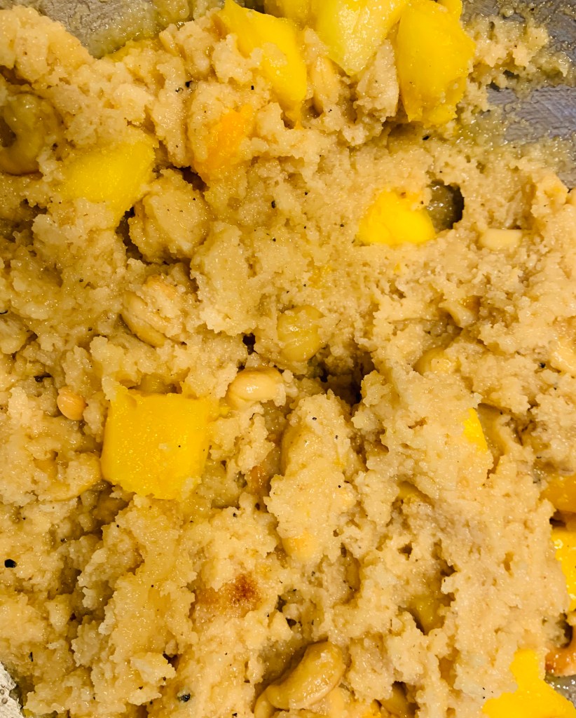 Make the Kol- the coconut milk mixture: To one 14 oz can of light coconut milk, add 2 tbsp of jaggery (or brown sugar), 1 tsp or so of salt, 2-3 tbsp of finely chopped cilantro and 2 tbsp of so of tamarind pulp. Tamarind pulp varies in it’s sourness. Taste the kol, would it you it to be saltier, more sour, sweeter- adjust the flavorings till the coconut milk is delicious.