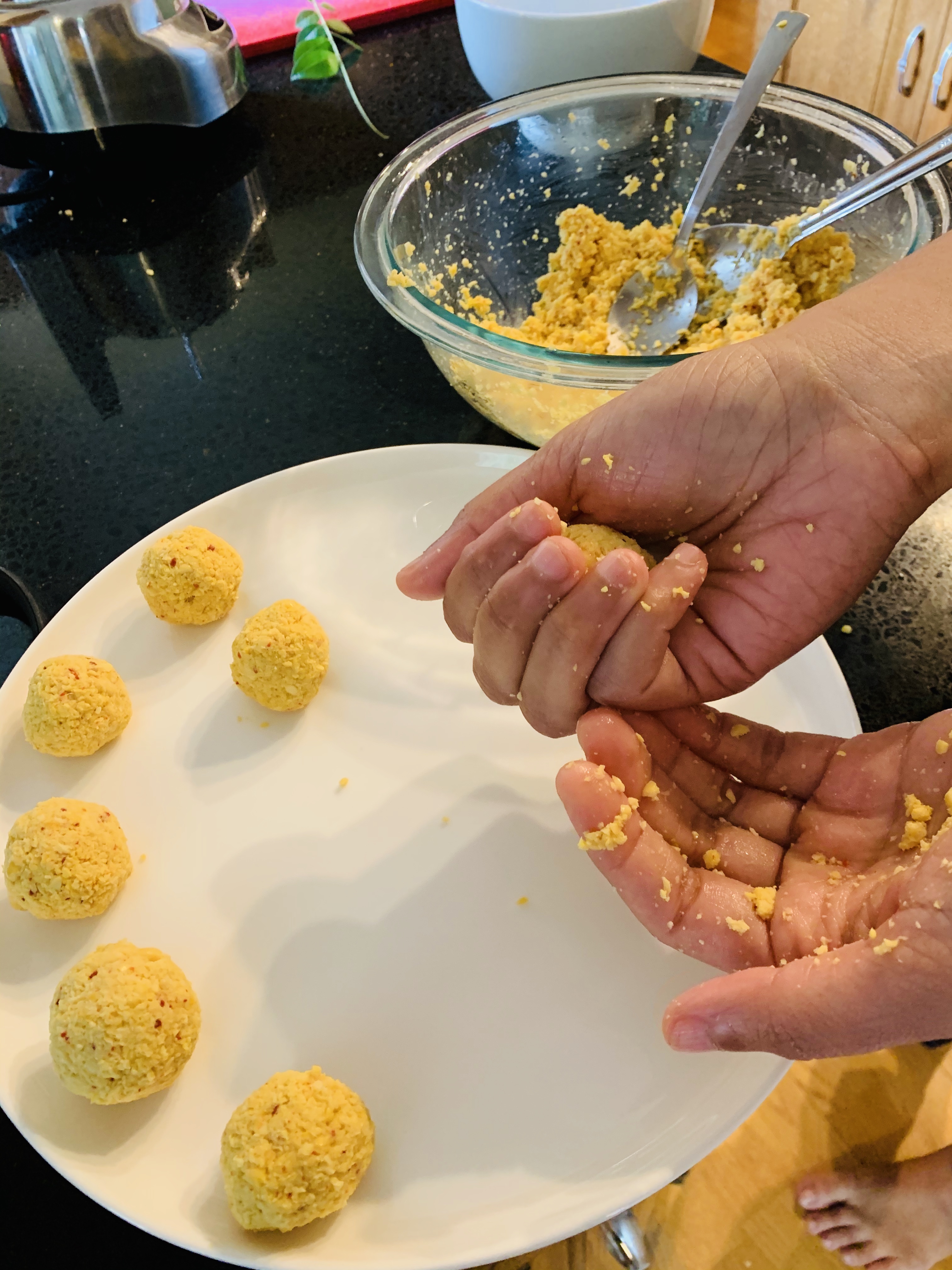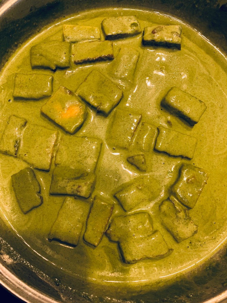 Add the gole to the boiling kadhi- cover and boil for 10-15 minutes. Don’t disturb the dumplings while they are cooking- they won’t hold their shape if you do.