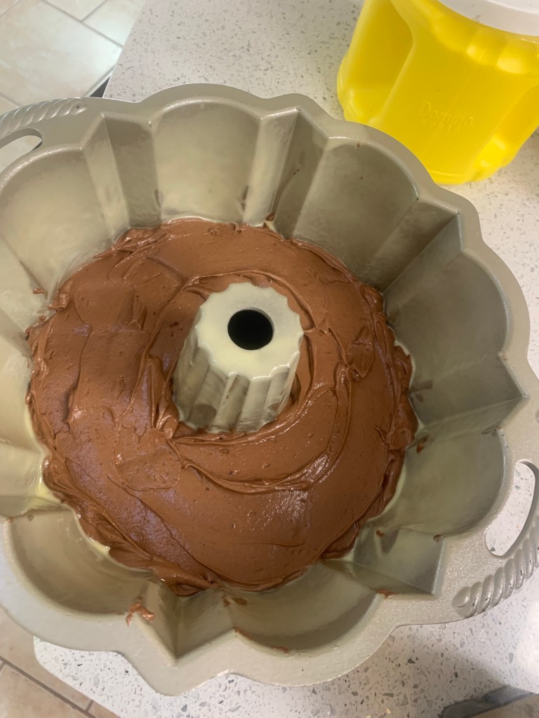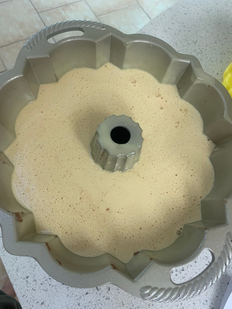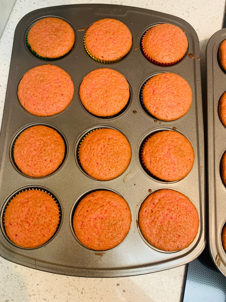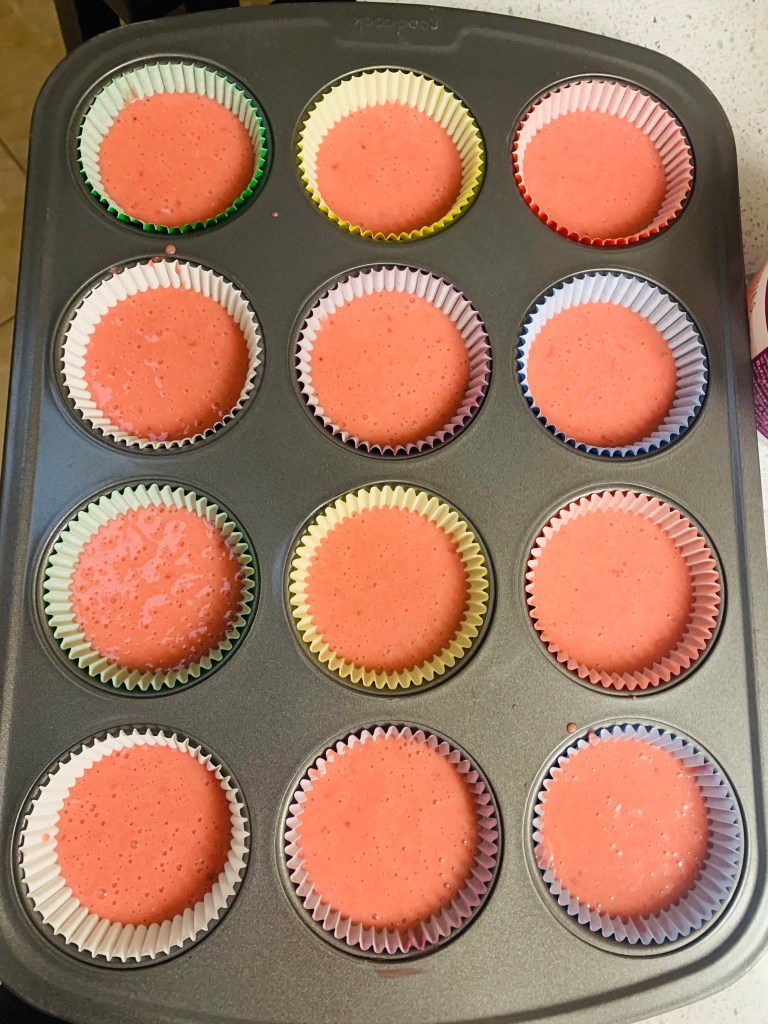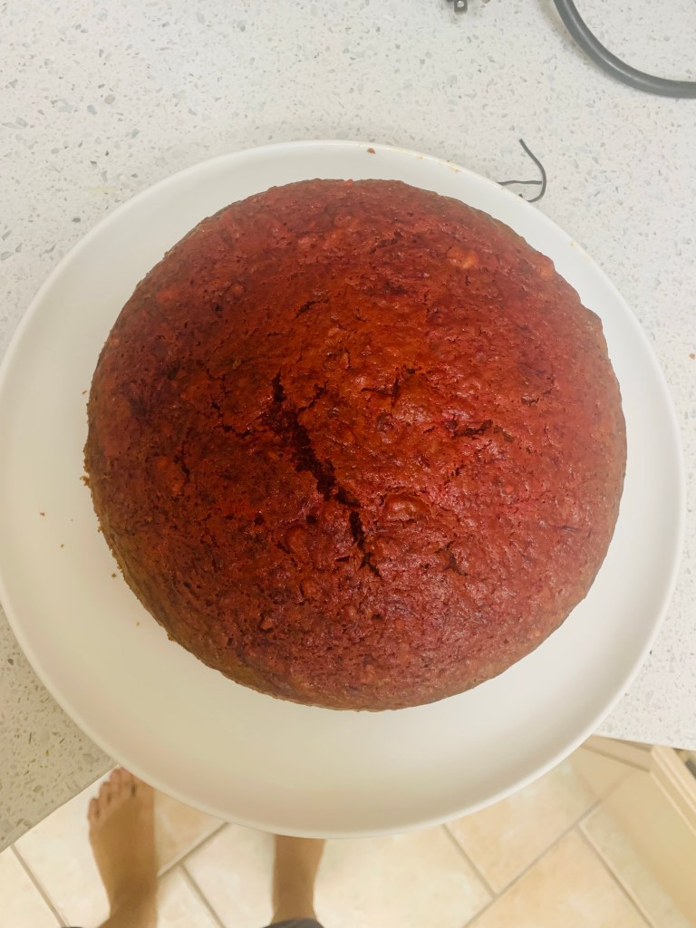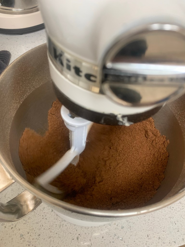 As with any Ottolenghi recipe , this one begins by collecting the ingredients and prepping them. I suggest weighing them (Ottolenghi’s recipes all have weird cup measures because his recipes are devised by weight)- sugar is added to the dry ingredients here. No mixer needed except for the frosting