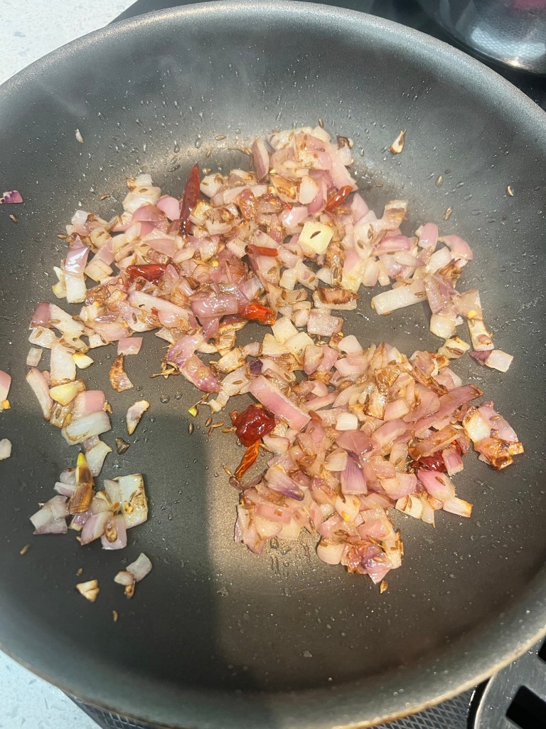 This style is cooking is new to me. It’s all stewed in water- the tadka, (the infusion of spices into oils that flavor the whole dish) is missing. The dominant taste here is the sweetness of the caramelized onion and butter. They work with the whole spices to form a gentle and delicious flavor.