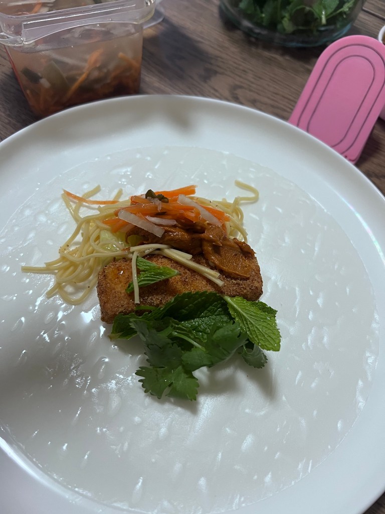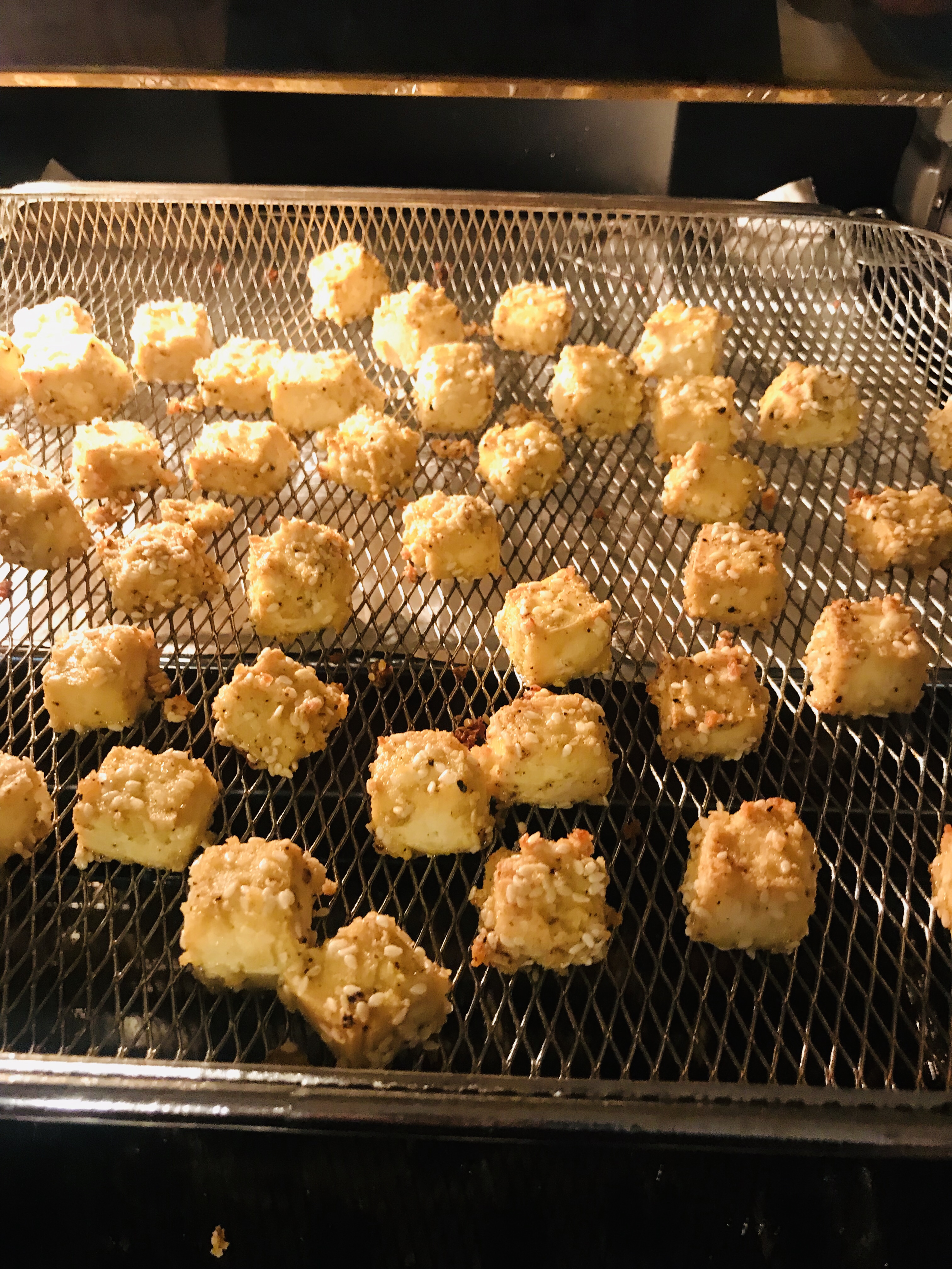 Protein: Andrea Nguyen from Viet world kitchen talks up frozen tofu a lot – so I tried it. Freeze and defrost a block of firm tofu – it changes the texture amazingly – the water just drains out. Then crumble tofu into 1 inch or so jagged crumbles
