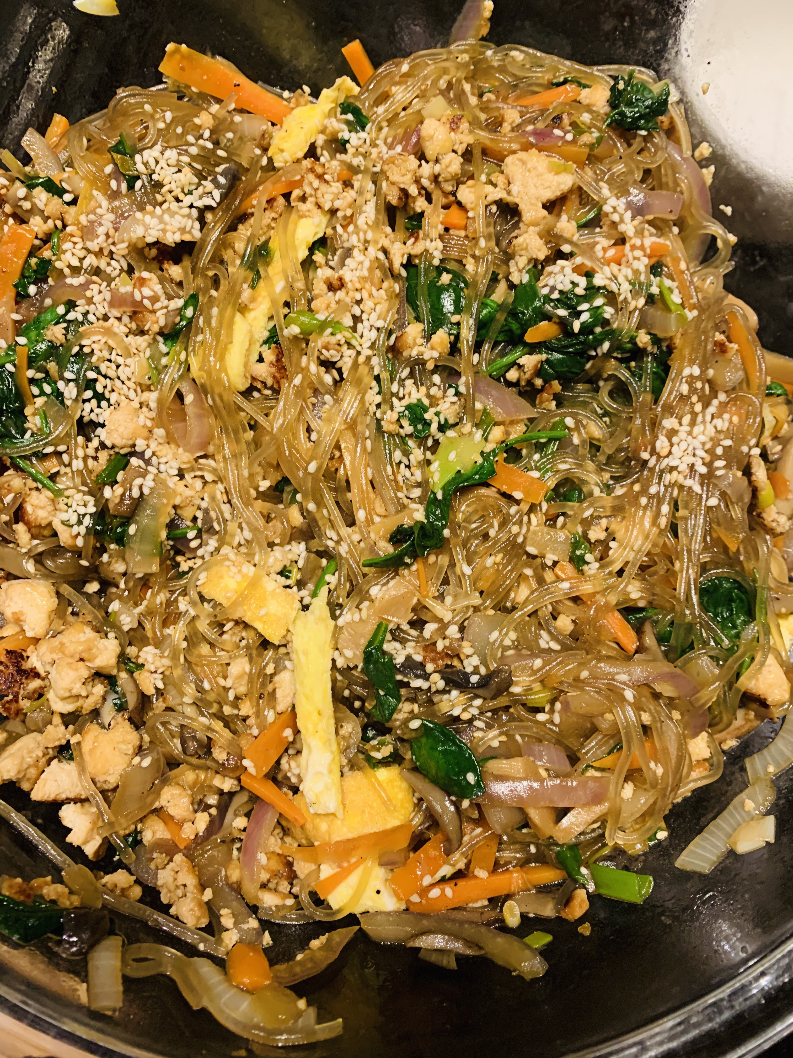 Garnish: the greens of 6 scallions and 1 tbsp toasted sesame seeds